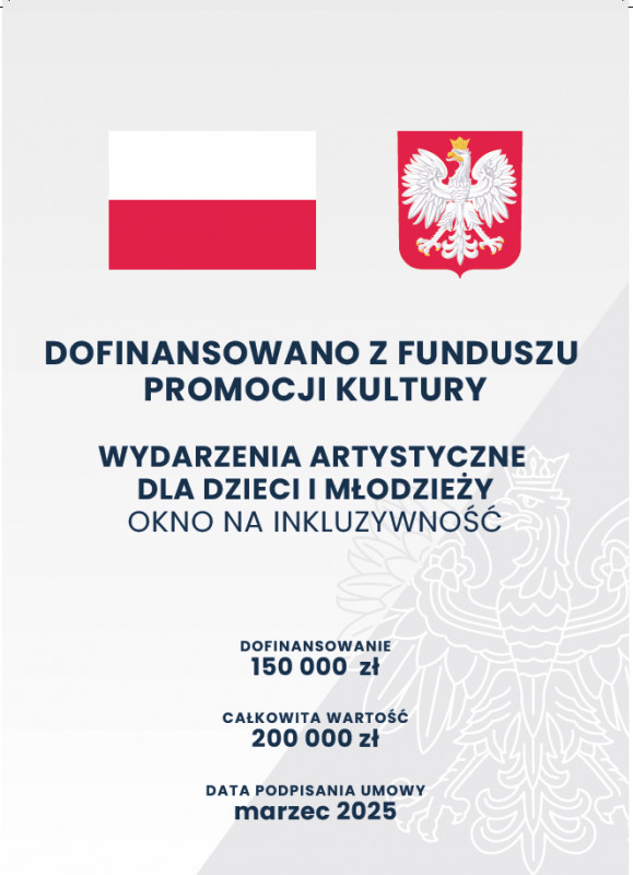 Dofinansowano ze środków Ministra Kultury i Dziedzictwa Narodowego pochodzących z Funduszu Promocji Kultury – państwowego funduszu celowego.